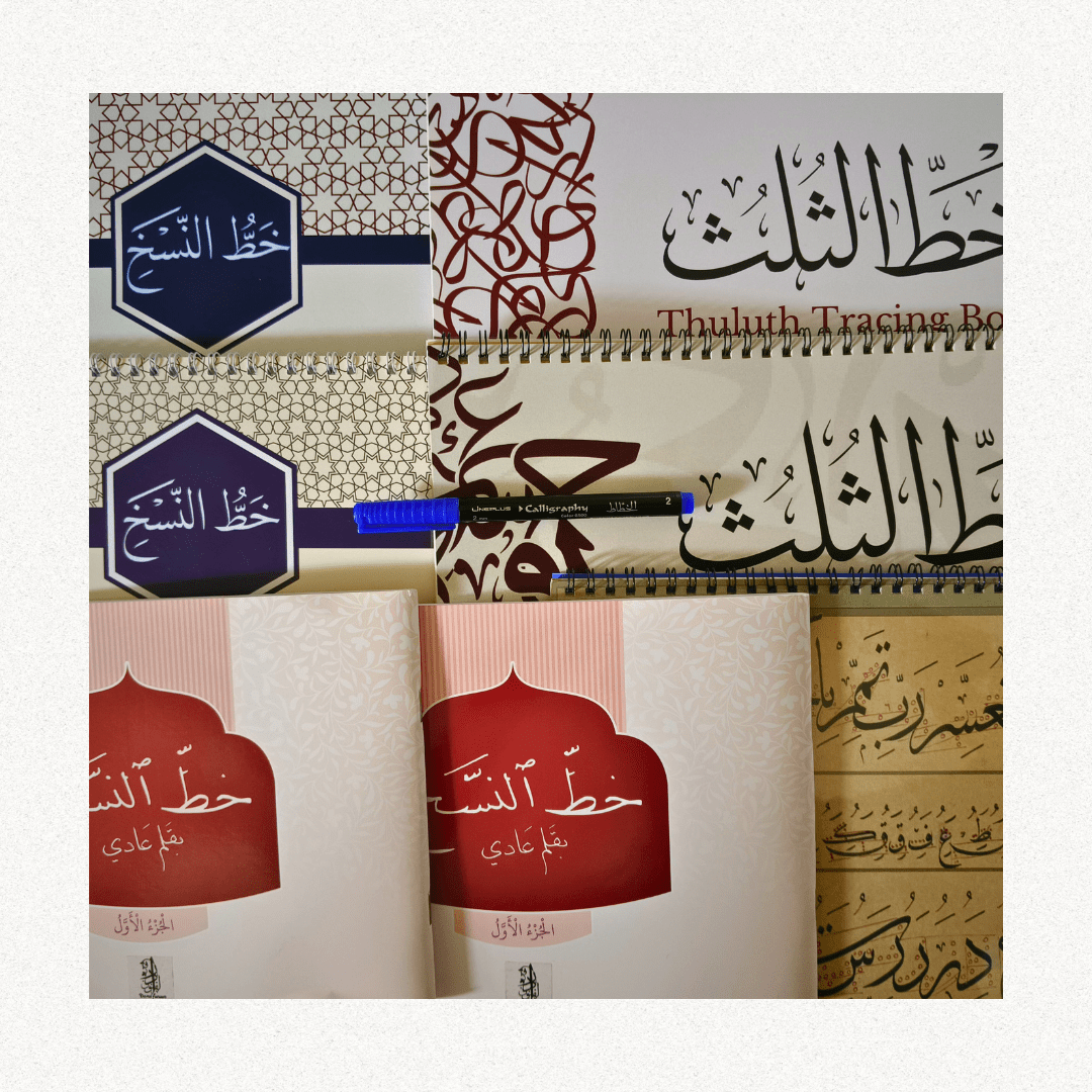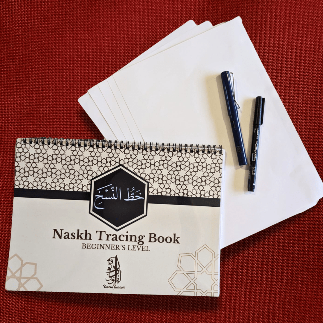 Introducing the Darul Funoon Complete Book Set, which includes all essential resources for mastering Arabic calligraphy. This comprehensive collection features Naskh Beginner and Advanced books, Thuluth Beginner and Advanced books, and Handwriting and Practice books. Each book provides structured learning, detailed guidance, and extensive practice exercises to help you perfect your calligraphy skills. The set also includes a versatile 2mm marker, ideal for creating precise and beautiful strokes.